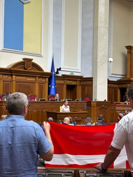 Представительницу Дании украинские депутаты встретили государственным флагом Дании.