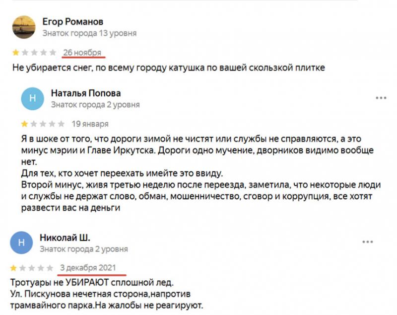 И если официальные странички ведомств, которые их обязали вести с декабря 2022 года, поражают своей пустотой и стерильностью, то отзывы в независимых источниках не оставляют простора для воображения. Особенно отличилась в сфере получения «нагоняев» от разъяренных жителей мэрия Иркутска, описание которой в различных источниках пестрит разношерстной критикой едва ли не всего, к чему прикасается рука иркутских чиновников.