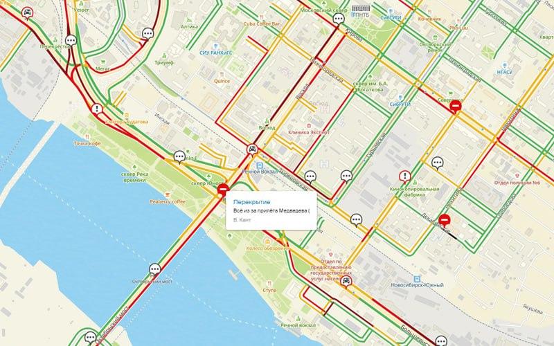 Девятибалльные пробки сковали Новосибирск в день приезда Медведева. Читатели заметили кортеж
