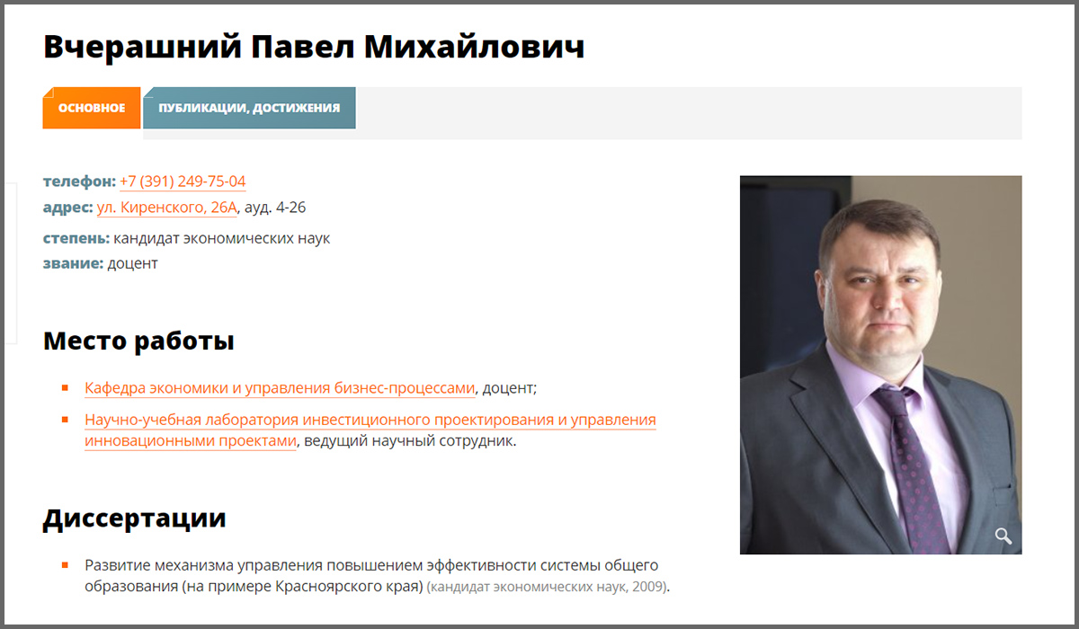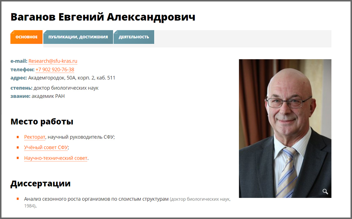 Верховец, по словам источника, старательно отирался около Евгения Ваганова, попадая во многие его научные статьи в качестве соавтора. Это позволило ему иметь список научных работ в количестве почти 50 статей, из которых только одна (!) написана лично им.