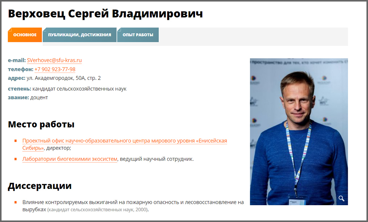 Несмотря на весьма скромный потенциал Верховца (он кандидат сельскохозяйственных наук, не имеет ни одной научной монографии и никак не влияет на жизнь университета), именно его активно проталкивал вверх Александр Усс. До 2006 года Верховец был скромным завлабом в системе Академии наук, в том самом Институте леса им. В. Н. Сукачева СО РАН, который возглавлял Евгений Ваганов. В СФУ Верховец пошел вслед за Вагановым, который грамотно перетащил за собой все молодые и работоспособные кадры.