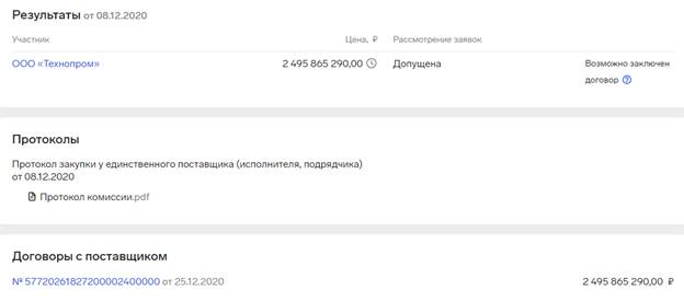 Причины подозревать действительно имеются. Мы прошлись по базе закупок и обнаружили, что в большинстве случаев закупки проходят у "Технопрома" либо как у единственного поставщика, либо конкуренцию ему составляет ну совсем ненатурально выглядящий участник.