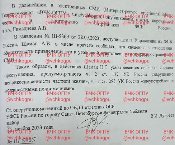 The person who is now being most hunted by the St. Petersburg FSB Directorate and the Directorate M of the FSB of the Russian Federation is Shaman. No, this is not the Z-singer or the shaman Gabyshev. We are talking about Shaman Alexander Vitalievich. At first, the FB officers tried to force him to participate in operational experiments — he went and offered bribes under their control. But they received a categorical refusal. Then they wanted to obtain testimony from him (in the status of an accused) against St. Petersburg Economic Security and Inspectorate employee Igor Leonenko, the son of the Deputy Chairman of the Investigative Committee Elena Leonenko, as well as testimony against the Chairman of the Kolpinsky District Court of St. Petersburg Nikulin and a large group of other persons. Directorate M of the FSB claims that Shaman previously gave them bribes. The shaman was forced to leave the Russian Federation and spoke about illegal actions on the VChK-OGPU telegram channel. His speech began like this: “I, Shaman Alexander Vitalievich, am a citizen of the Russian Federation, who have never been an official in my life. Due to a personal conflict, since 2019, a number of employees of the M Department of the FSB of the Russian Federation (Ivan Tekutyev) and the M Department of the FSB Directorate for St. Petersburg and Leningrad Region (Gimadiev Alexander, Zhuchik Sergey) have been trying to illegally initiate a criminal case against me since 2019. Due to the peculiarities of the internal structure of the FSB and the rotation of personnel, I do not understand who could protect me from the above-mentioned corrupt officials in the FSB, since they are part of a group of people who also work in the FSB Internal Security Service (Mikhail Tarakanov). De facto, both of these departments (M and the FSB Internal Security Service) control the appointment of judges through the APS; one of the departments of the FSB M Department is responsible for monitoring corruption and participates in approvals for appointments in the prosecutor’s office. Please explain which agency can protect me from illegal actions of the FSB Department?”
