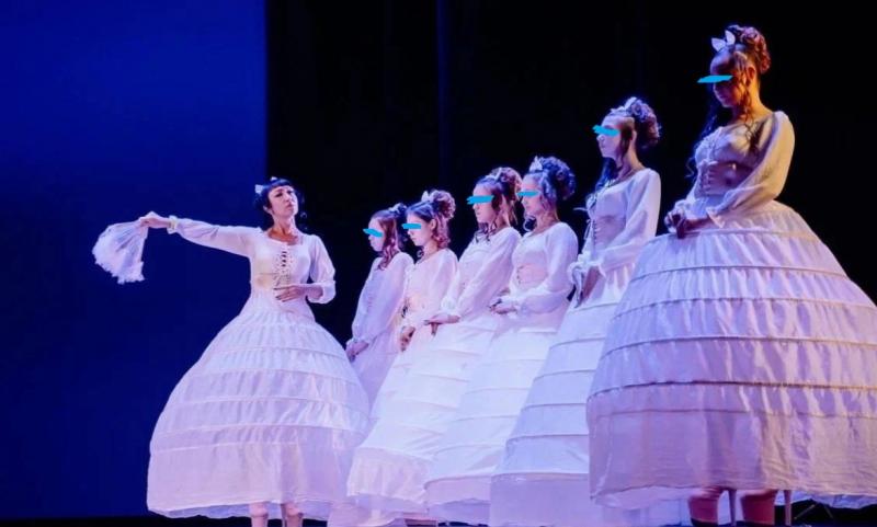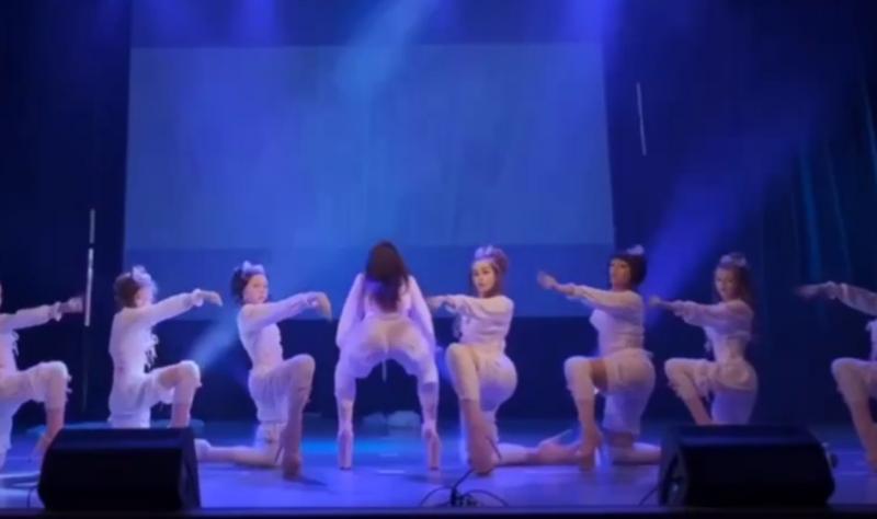 На афишах обозначено возрастное ограничение 6+, а шокировавший зрителей танец исполняли под песню «шальная императрица». Имеется в виду та самая, которая «в объятьях юных кавалеров забывает обо всем». Хореография – в стиле frame up, то есть на базе стрип-пластики. Вышли в объёмных юбках, в процессе их поскидывали и принялись хлопать солистку по заднице.