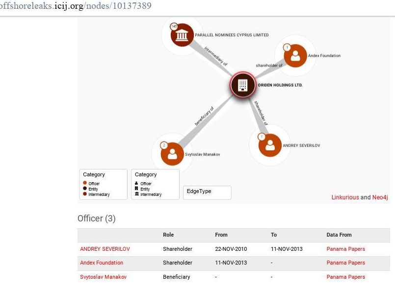 В открытых источниках с фамилиями сотрудников компании и самой фирмой связаны более 300 юрлиц, как с пропиской на Кипре, офшорах, так и в России. Только список этих компаний занял бы несколько страниц. Но всех их может объединять один и тот же человек - некий Андрей Северилов (ANDREY SEVERILOV).