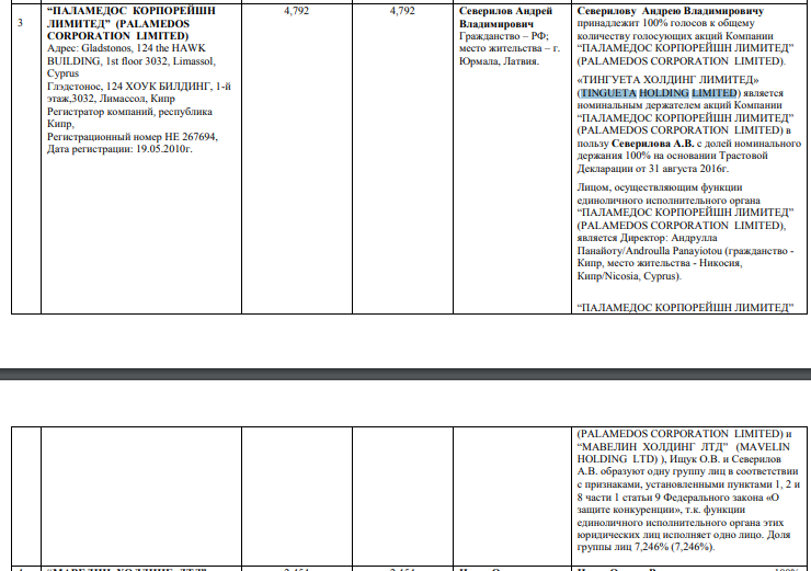 Кроме того, секретарём PARALLEL NOMINEES CYPRUS LIMITED числилось TINGUETA HOLDING LIMITED, а последнее, если судить по раскрытию связей "Локо-банка", имеет прямое отношение к Андрею Северилову.