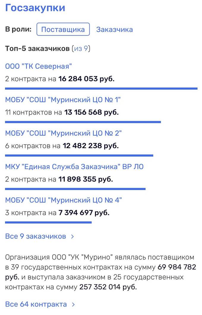 А еще одна фирма Березина, «Топливная компания «Мурино», получила госконтрактов более чем на миллиард: