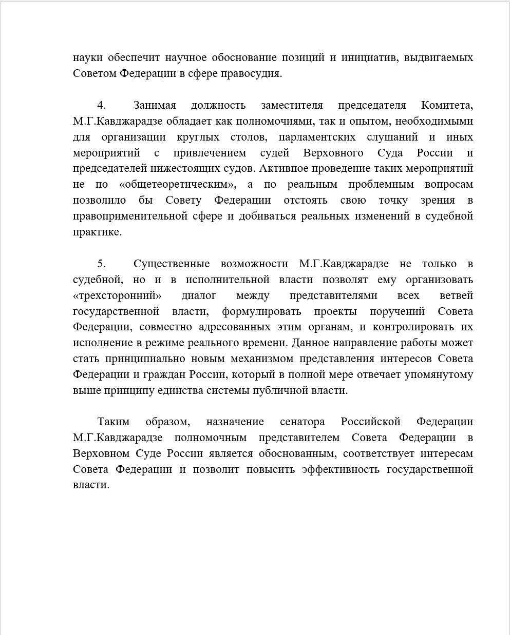 Интересно было бы узнать, является ли эта справка личной позицией самого Федорова или же лоббирование Кавджарадзе было согласовано с Председателем Верховного Суда В.М. Лебедевым?