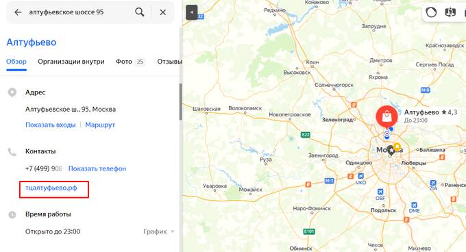 Мы обнаружили одну любопытную деталь, что сайт ТРЦ "Алтуфьево" из-за которого шел спор у Бойко с Сурковым, указанный в строке, где даны контакты заведений, на Яндекс.картах, ведёт на страницу онлайн-казино. Бойко так и не отошёл от дел?