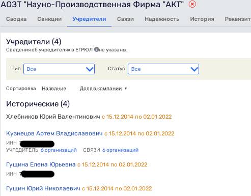 Компания "Авр Инвест", созданная в 2020 году, числится владельцем долей в 27 компаниях, часть из которых наштампованы в 2023 году. Среди них есть некое АО "Интэкс", счета которого оказались заблокированы по решению налоговых органов.