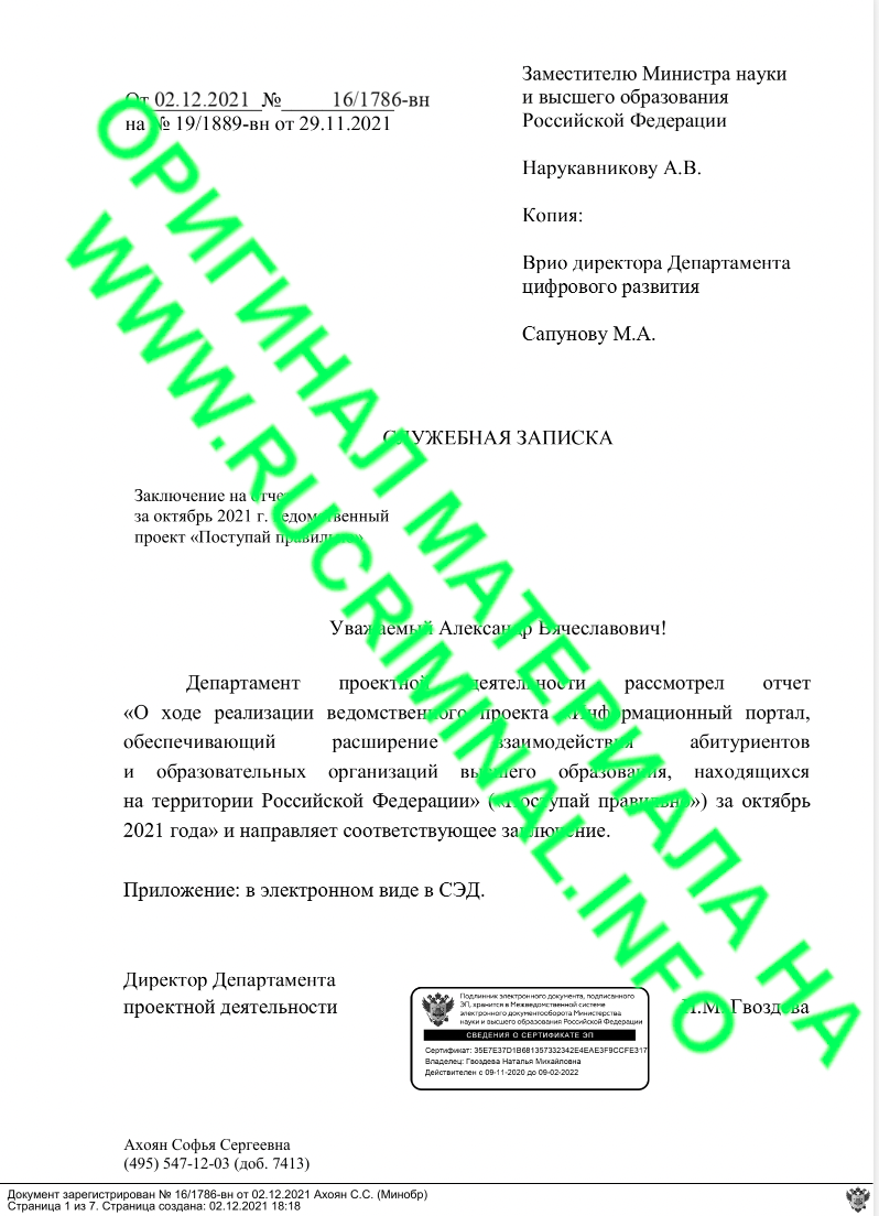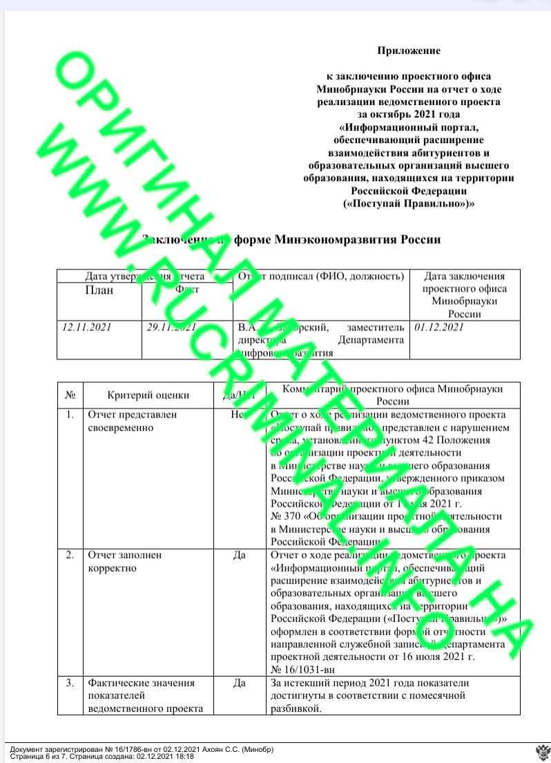 Как выяснил ВЧК-ОГПУ, предыстория нашего скандала проекта «Поступай Правильно», который создавался Минобрнауки с 2015 года, с ежегодным финансированием через госзадание на МЭИ. Но в 2021 году, когда Минобрнауки потребовалось выполнить показатели национального проекта «Образование», которые были привязаны к реальной работе «Поступай Правильно» вдруг выяснилось, что результат огромных вливаний федерального бюджета – отсутствует. Системы по факту нет, а Минобрнауки и министр не смогут отчитаться Правительству России о достижении показателей и выполнении майских указов Путина. Проблема….