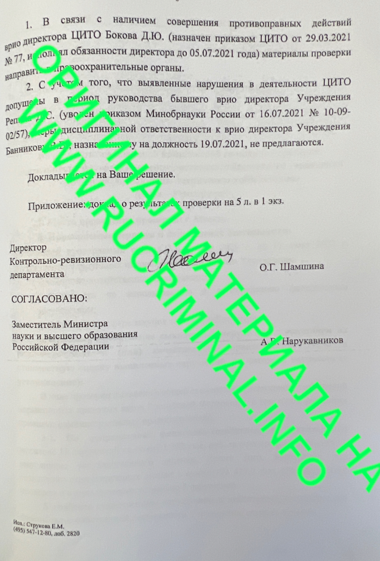 Так и было возбуждено дело по материалам проверки контрольно-ревизионного департамента Министерства, где только и указано, что отчетов от сотрудников не поступало, а правоохранители должны обратить внимание на Бокова, а к Банникову мер не применять (рис4).