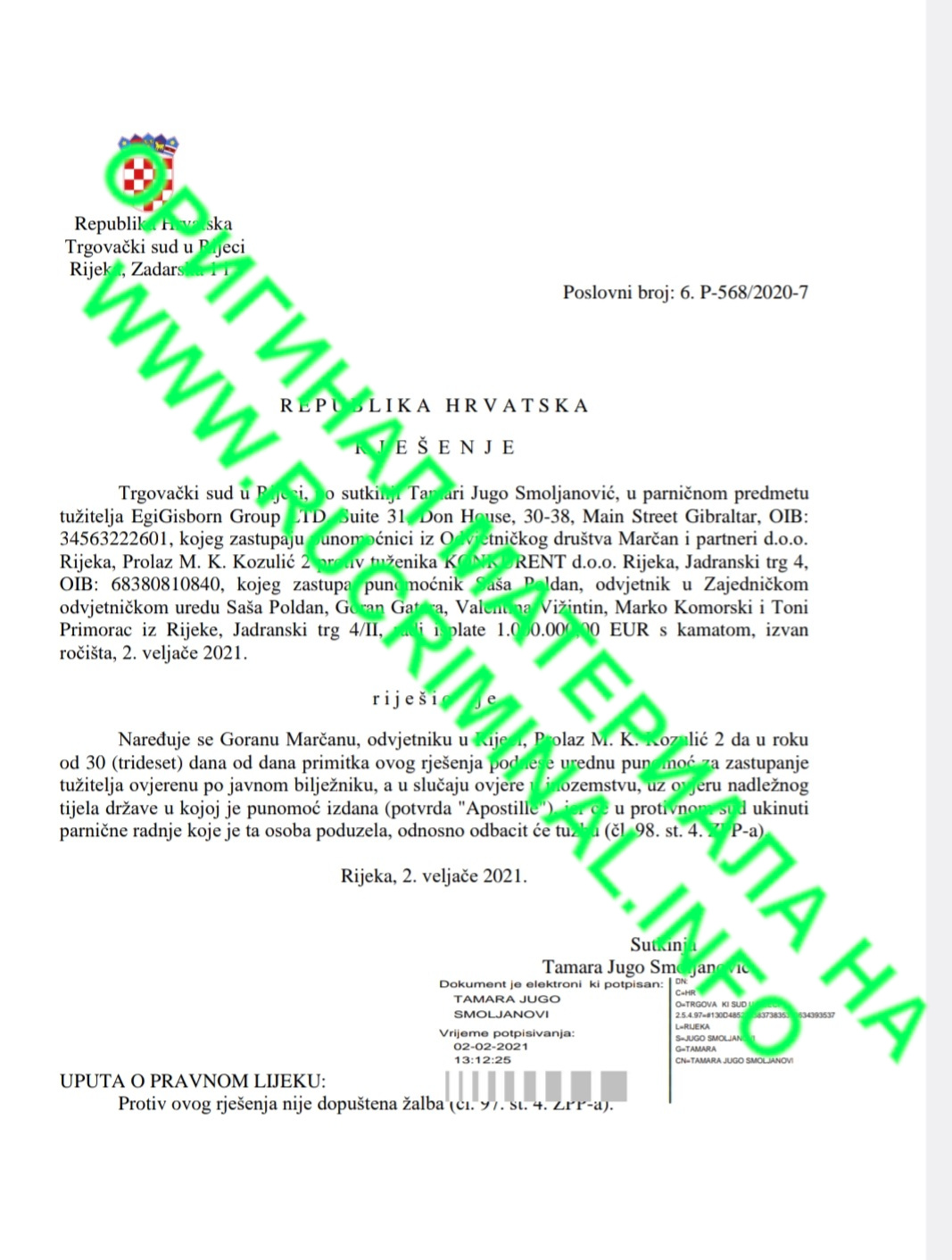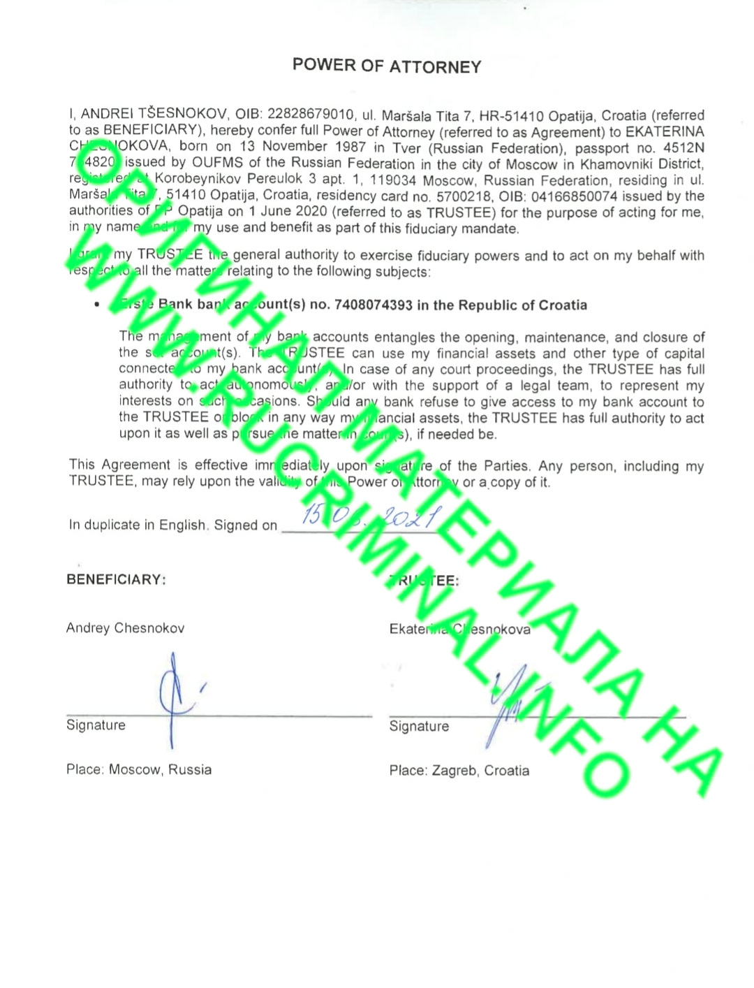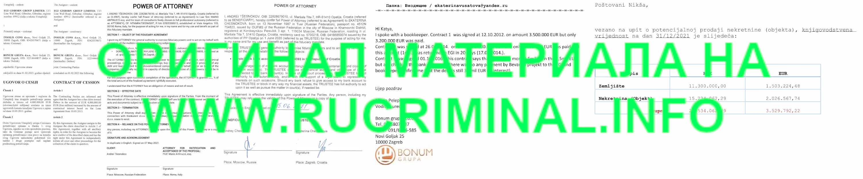 Three years ago, he suddenly disappeared for Croatian lawyers, and his wife appeared in his place - Chesnokova Ekaterina Dmitrievna (how Chesnokov turns into Tsesnokov is a separate story), which, however, is recorded a little differently in Croatian documents (as in general Andrei Chesnokov with a completely different transliteration in the passport in comparison with Russian documents). However, lawyers from Croatia were ready to turn a blind eye to these assumptions in the powers of attorney, but the divorce of the spouses, which Ekaterina kept silent about, was already extremely alarming to Croatian lawyers, who sent Chesnokov to the pre-trial detention center a complete set of documents on his property to confirm the correctness of the transactions. The SD most likely did not expect such a gift.