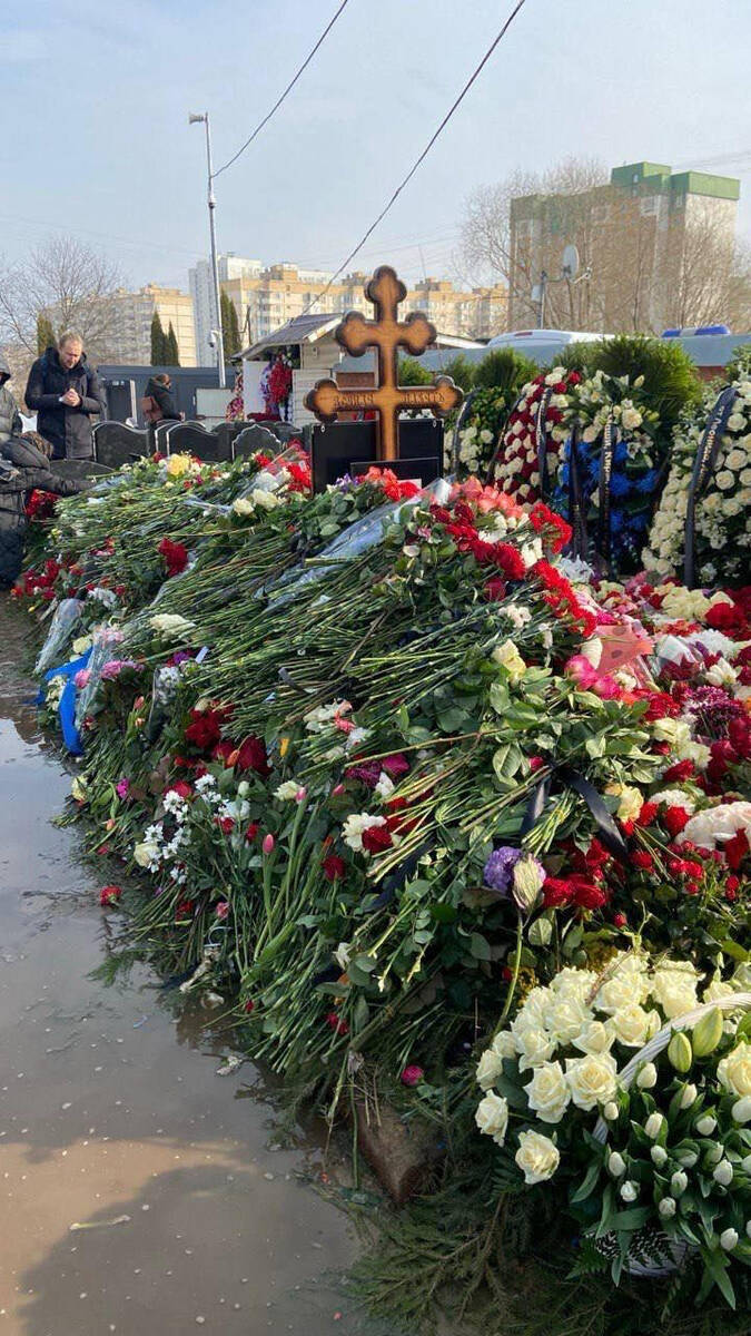 Помимо цветов к могиле несут письма, рисунки и фото политика.