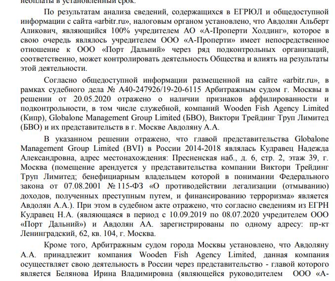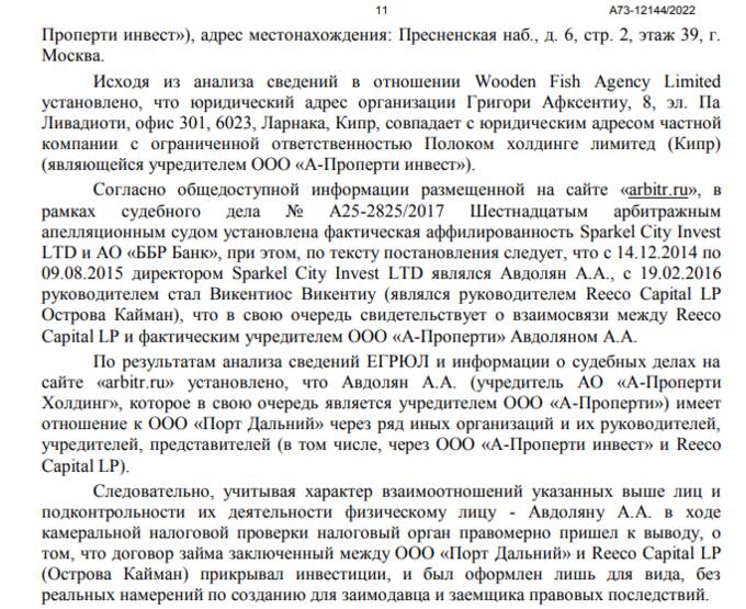 Налоговики доказали связь Reeco с целой группой иных офшоров и российских фирм Авдоляна, в том числе с ООО "А-Проперти инвест" ("Петр Инвест").