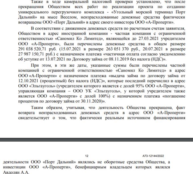 Упомянутый займ (итоговая сумма из документов — 20 млн долларов) был получен ООО от Reeco Capital LP с Каймановых островов, при этом порт тогда не работал и никаких доходов не имел.