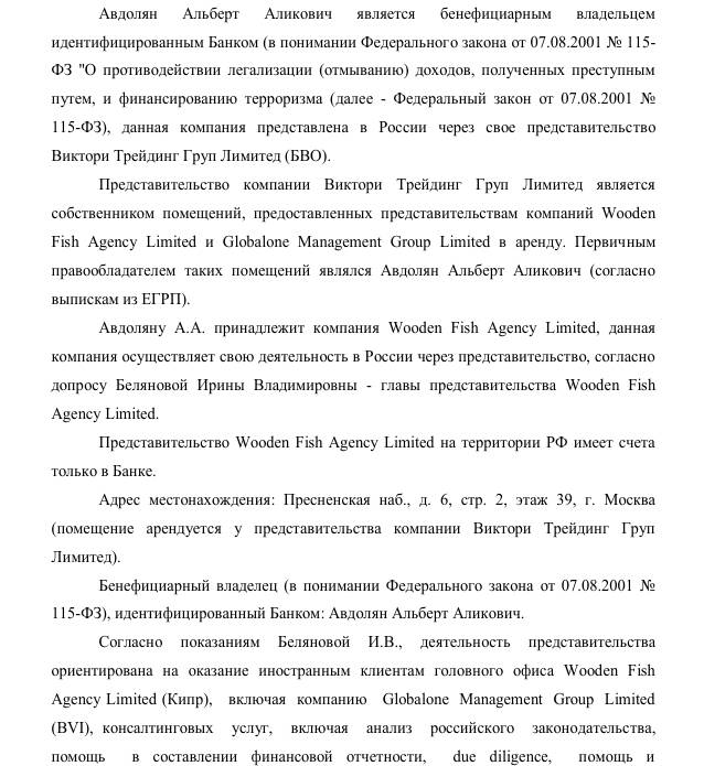 Кроме того, у Wooden Fish Agency Limited даже юрадрес с "Полоком холдингс лимитед" совпадал. А ранее в суде была доказана связь Wooden именно с Авдоляном.