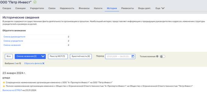 В январе 2024 года компании "А-Проперти Инвест" сменили собственника — с кипрской фирмы POLOCOM HOLDINGS LIMITED на Петра Тиграновича Авдольяна, а заодно и название — на ООО "Петр Инвест".