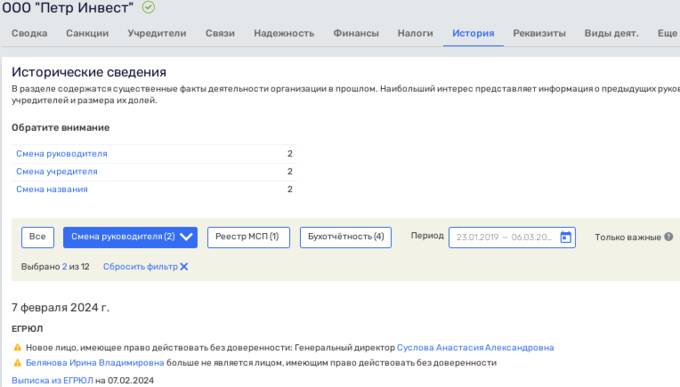 Следующим шагом стала смена директора "Петр Инвеста" — в феврале 2024 года им стала некая Анастасия Суслова, других активов не имевшая. Ранее этот пост занимала Ирина Белянова, что фигурировала во многих офшорных схемах с участием Авдоляна, включая вывод средств из российского банка в латвийский. О чём мы напомним позднее.