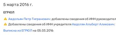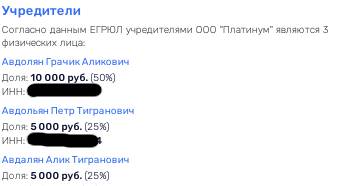 У г-на Авдольяна есть общий актив как с самим Альбертом Авдоляном (краснодарское ООО "Агро"), так и с Аликом Тиграновичем Авдаляном (ООО "Платинум"), который очень похож на отца олигарха и брата Авдольяна. Разное написание фамилии, вероятно, некая попытка запутать следы, вспомнить хотя бы тот факт, что жена Авдоляна называется себя Авдолиан. Тем более, например, некий Грачик Аликович уже указан как Авдолян