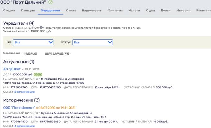 А вот тут стоит, пожалуй, заглянуть в отчётность компании. Только по итогам 2020 года за фирмой числилось 3,3 млрд рублей неких займов. Кто и кому их выдал, не раскрывалось, но, памятуя историю с "Портом Дальний" и офшорами, можно сделать определённые выводы.