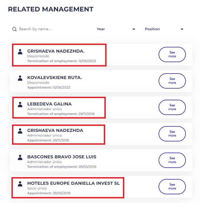 In addition, in 2018, she was appointed to the position of the administrative director of the Spanish company AGUA AZUL SL. If you go a little further, it turns out that she left her leadership quite recently, on June 15, 2023. In addition, earlier Galina Lebedeva was in the management of the same company.