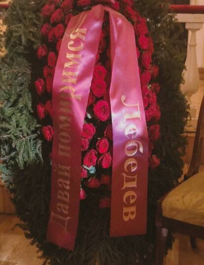 Wreath from Igor Lebedev at the funeral of Vladimir Zhirinovsky