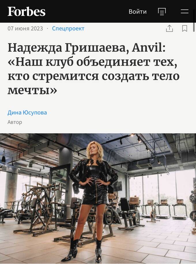 Forbes material about the Anvil fitness club by Nadezhda Grishaeva