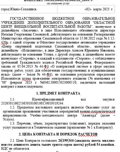 Читатели уточнили, что за аренду койко-мест и питание ОЦВВР (ГАУ РРЦДОиВ) платит огромные деньги и это тоже послужило поводом для разбирательства по уголовному делу, но УФАС и Следком Южно-Сахалинска ничего не видят. Авторы письма добавили, что при этом в данном госконтракте идёт покупка звукорежиссера и педагогов организаторов, хотя все эти специалисты есть в штате ОЦВВР и именно они были задействованы за зарплату на эти игры для детей.