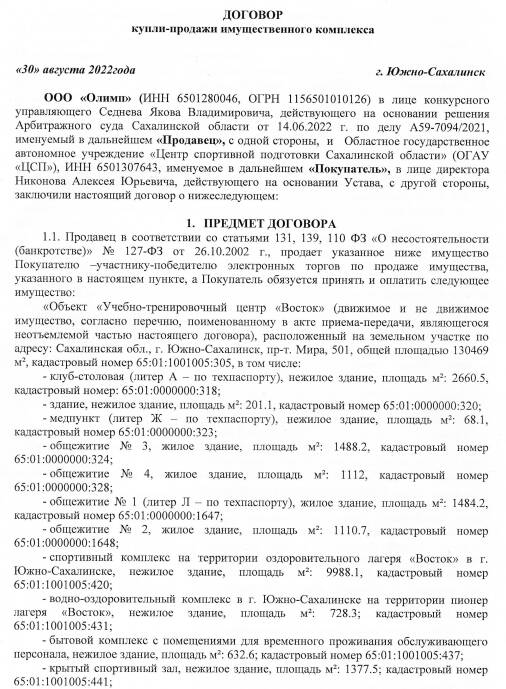 Выяснилось, что после банкротства ООО "Олимп" в 2022 году правительство Сахалина за опять же бюджетные средства в размере 1,799 млрд рублей выкупило у фирмы учебно-тренировочный центр "Восток" (УТЦ "Восток"). Покупателем выступило учреждение Минспорта Сахалина - Центр спортивной подготовки Сахалинской области (ЦСП), а деньги выделили из бюджета.