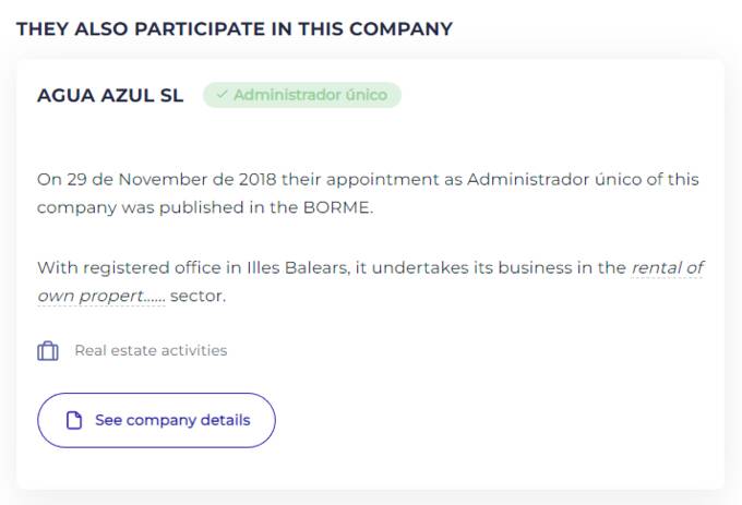 In addition, in 2018 she was appointed to the position of administrative director of the Spanish company AGUA AZUL SL. If you go a little further, it turns out that she left her leadership quite recently, on June 15, 2023. In addition, Galina Lebedeva was previously in the management of the same company.