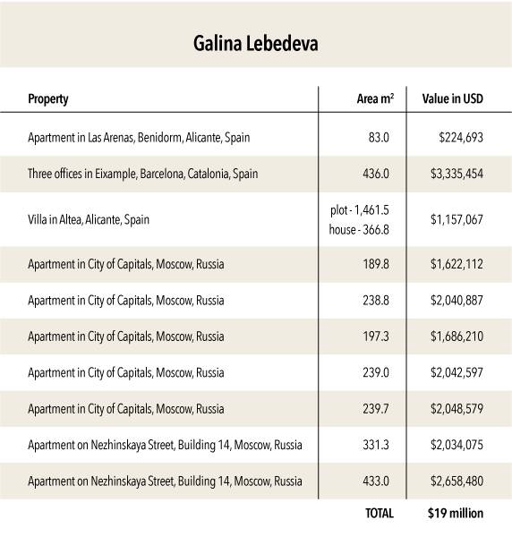 It is alleged that Zhirinovsky’s relatives and friends own many real estate properties around the world. Among them are 19 apartments and commercial premises in Moscow owned by Telmi, the company of Galina Lebedeva, the former wife of Vladimir Zhirinovsky.