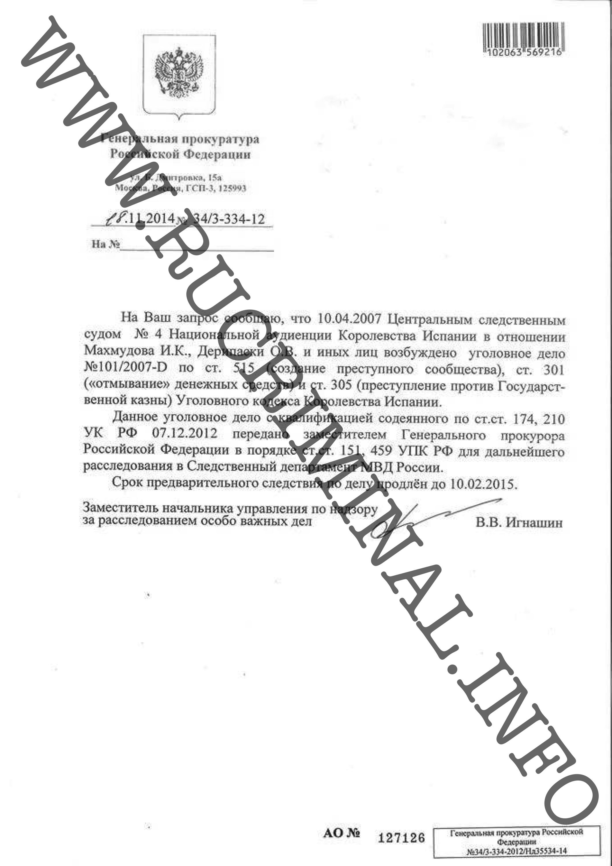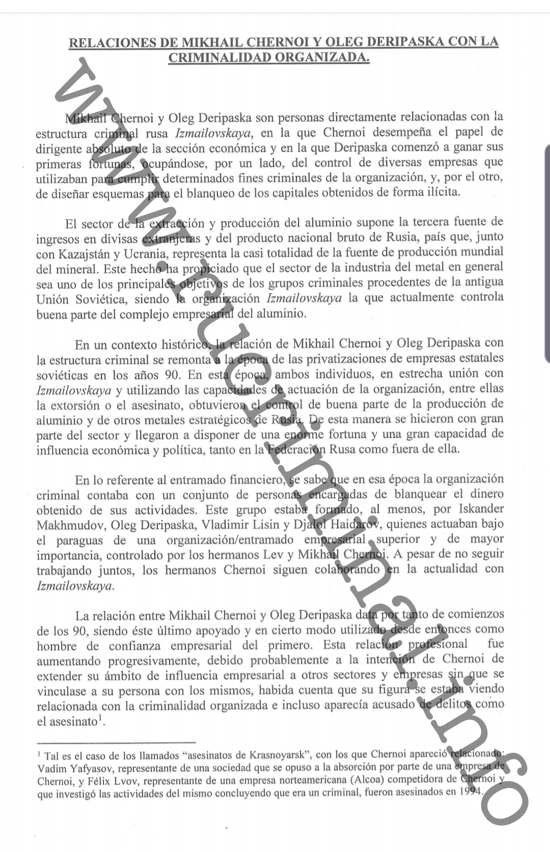 А теперь издание публикует вторую часть справки, приложенной к «похороненному» делу об отмывании Дерипаской денег в Испании: