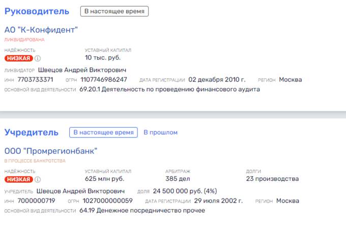 Почему? Ответ может быть неожиданным. Руководителем АО выступал Андрей Викторович Швецов. Он же - один из учредителей скандального "Промрегионбанка". А скандальный он потому, что оказался в центре уголовного скандала в рамках дела о хищении средств банка.
