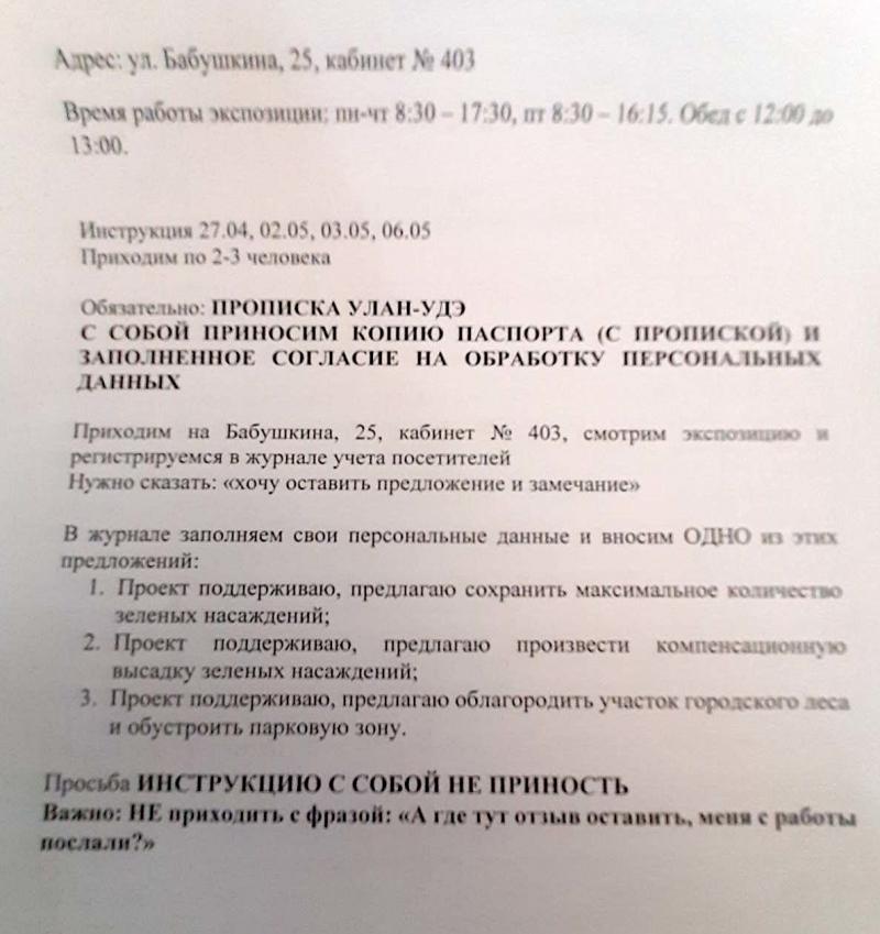 Между тем администрация Улан-Удэ ведёт свою игру, полностью игнорируя мнение большинства жителей. Сотрудникам отправляет инструкции о том, как проголосовать и оставить отзыв в поддержку строительства мега колонии. Таким образом, власти надеются протащить проект путём манипуляций. Памятку опубликовали в телеграм-канале «БУРЛОВ», ознакомиться с ней можно ниже.