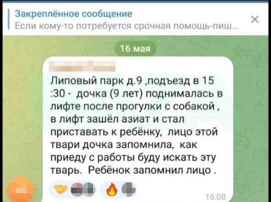 Первые сообщения о странном мужчине начали появляться днём 16 мая. Один из местных жителей написал в чате, что около 15:30 в подъезд дома номер 9 по улице Липовый парк вместе с его девятилетней дочкой, возвращавшейся с прогулки с собакой, зашел неизвестный мужчина и стал к ней приставать в лифте.