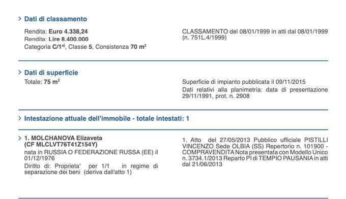 Там же, в Порто-Черво, у жены Молчанова есть и другой дом. Он, видимо, поделен на две семьи: левая часть дома с бассейном принадлежит итальянцам, а вот правая часть площадью почти в 300 квадратов — в собственности у Елизаветы Молчановой.