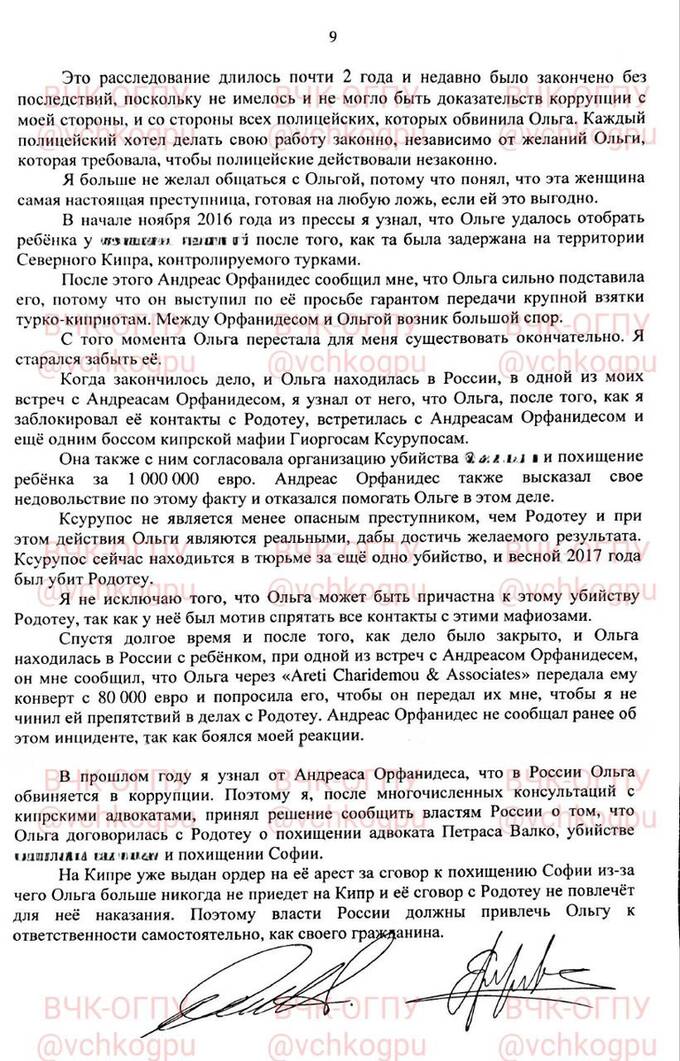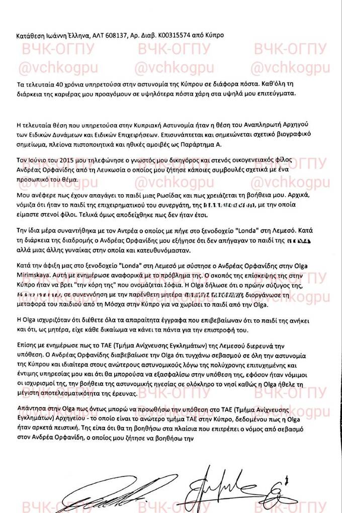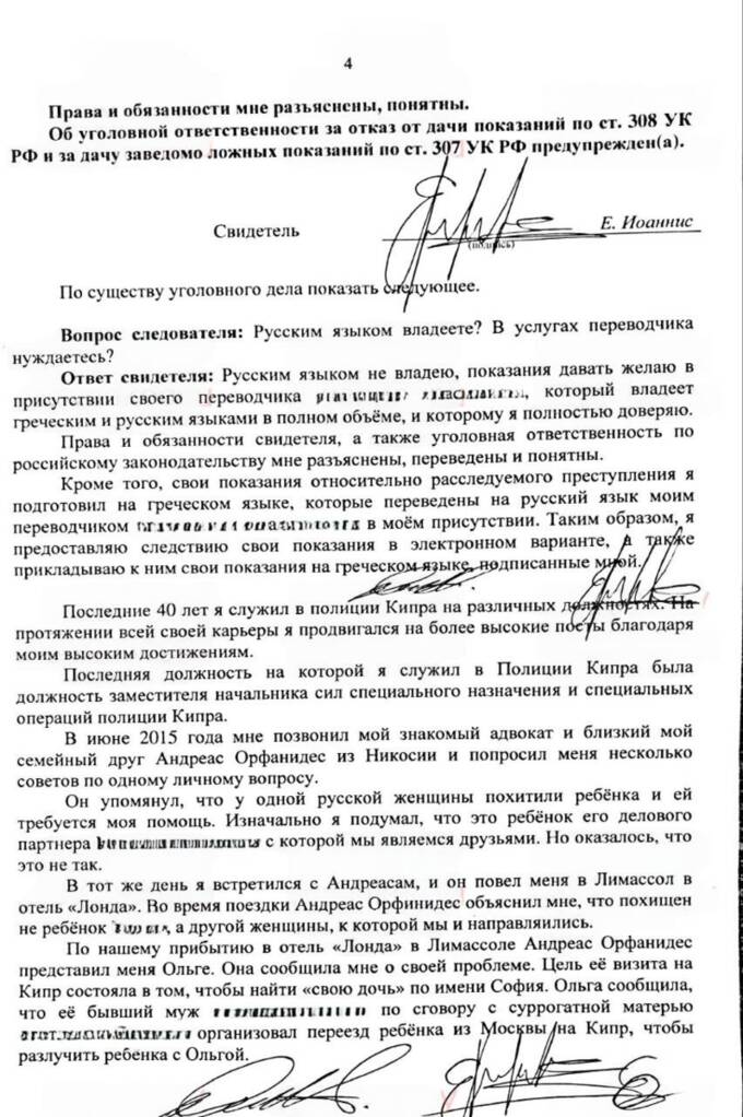 Пару недель назад киприот написал в СК и Генпрокуратуру обращения о том, что "оговорил" Миримскую из-за того, что следователи лишили его еды, отдыха и угрожали арестовать. Интересно, как при этом оценивать приложенные к российскому протоколу допроса Яниса Эллинаса его показания на греческом языке? Скорее всего, напугав полковника, следователь буднично достал из тумбочки клавиатуру с греческой раскладкой и усадил готового на всё свидетеля за свой компьютер делать свою работу, не иначе.