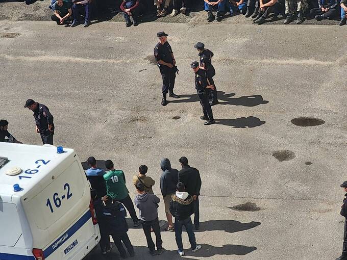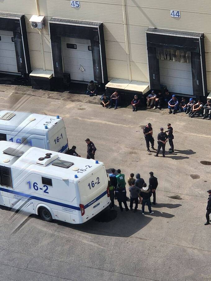 Рабочих вывели на улицу, на территории несколько нарядов полиции. С чем именно связаны проверки — не известно, вероятнее всего полиция проверяет соблюдение миграционного законодательства среди рабочих. По словам местных жителей, на территории также находится молодежный религиозный клуб.