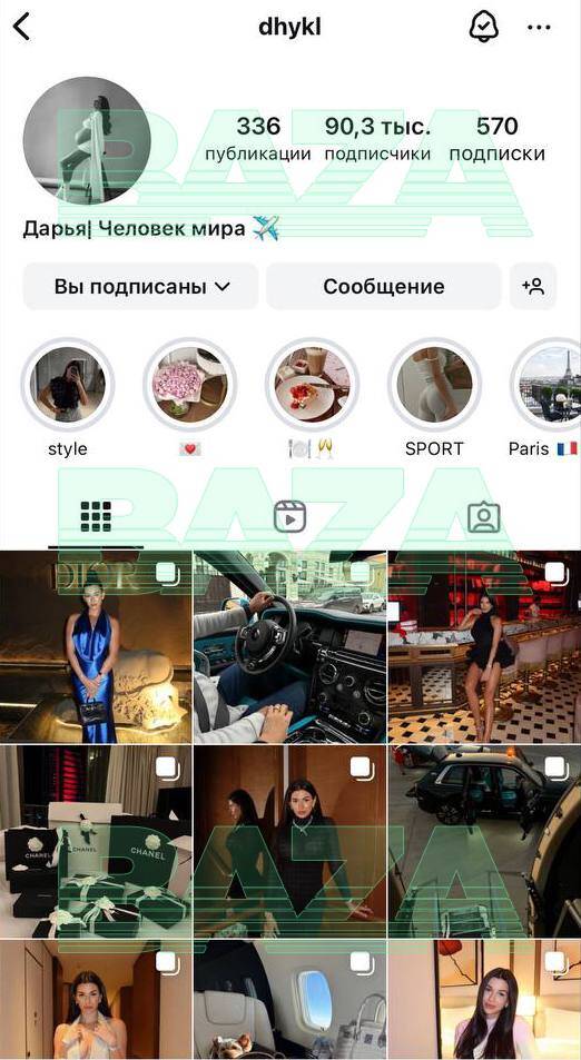 Вместе с началом отношений инста Даши постоянно начала заполняться фотографиями дорогих автомобилей, сумок «Биркин», фотографиями из частных джетов (и автомобилей, встречающих её прямо у трапа самолёта). Также Даша похвасталась новеньким «Ламборгини», который «просто красиво стоит в гараже, так как ездить она на нём так и не научилась».