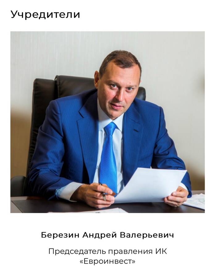 Через экран официального веб-сайта компании Березин смотрит уверенным взглядом, и как уверяет учредитель компании, «Евроинвест» — это «На сегодняшний день Инвестиционная компания «Евроинвест» представляет собой многопрофильный холдинг, в структуру которого входят компании и проекты из различных секторов экономики».