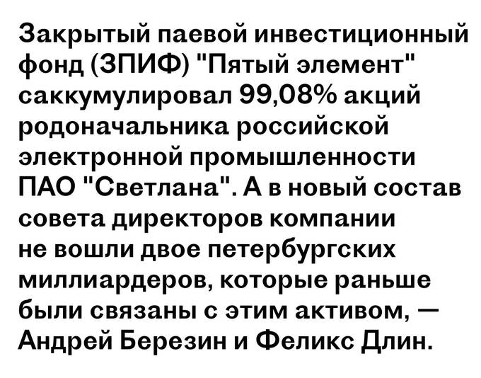 Березин даже доигрался до того, что летом 2022 года его вместе с партнером Феликсом Длином выкинули из совета директоров ПАО «Светлана», в которой Березин имеет долю.