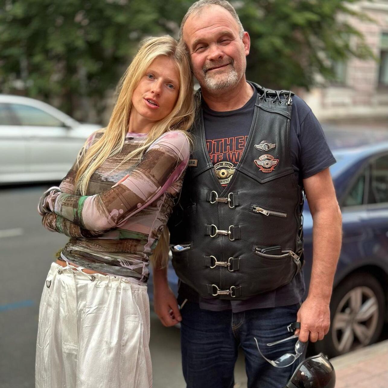 На одном из фото, сделанном во время поездки в город на Неве, супруга Эрнста позирует со своим отцом Павлом. «Батя байкер», — написала актриса в Сети.