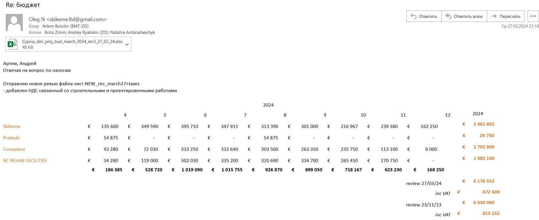 Тем не менее, именно младший брат покойного российского оппозиционера составляет финпланы для Coneplace и Proleski, занимается возведением того самого элитного рехаба, ищет подрядчиков для контор шефа, но в целом живет как бы на привязи. Например, Борис Зимин лично дает подчиненным распоряжения на покупку билетов для командировок Олега.