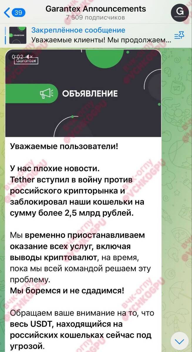 Сегодня эмитент стейблкоина USDT компания Tether (Тезер) заблокировал 27 млн долларов, принадлежащих российской криптобирже Гарантекс.