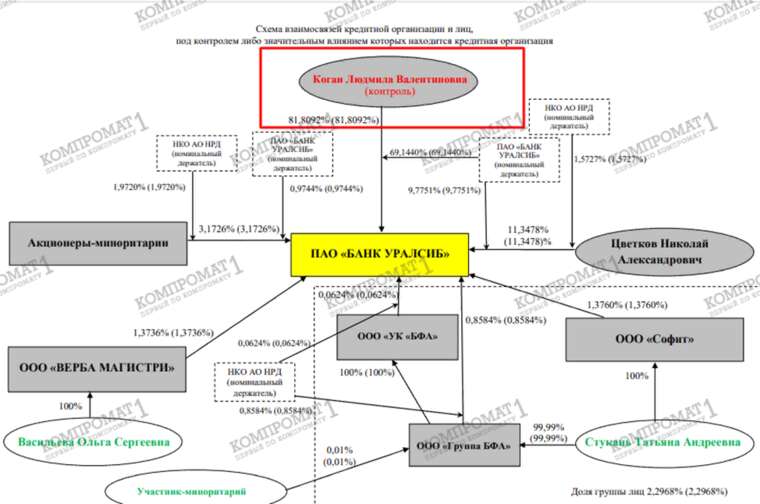 Новообнаруженный российский миллиардер Людмила Коган через свои компании выводит средства клиентов банка «Уралсиб».