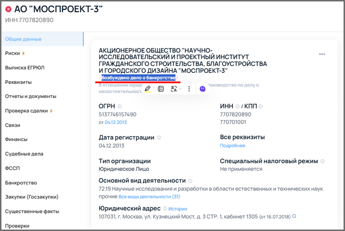 Неудивительно, что в такой ситуации произошли изменения в руководстве компаний. Руслан Байсаров больше не является главой «Бамтоннельстрой-Мост», его место занял Юрий Кравцов. В «Моспроект-3» также произошла смена директора: Константина Матвеева назначили на пост, заменив Анну Меркулову. Напомним, в отношении АО «Моспроект-3» возбуждено дело о банкротстве.