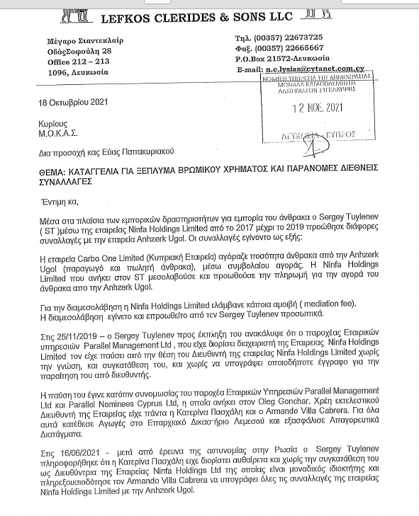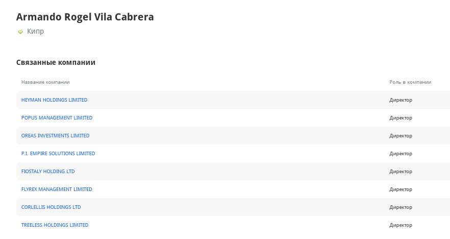 Recall that the editors of Redactionhave already said that among the defendants in the audit launched by the financial police of Cyprus is the Cypriot company PARALLEL NOMINES LIMITED. She was associated with the case of ex-Minister of the Open Government Mikhail Abyzov and Andrei Severilov. And employees of the company, such as Katina Papanikolau, Armando Vila Cabrera, Anastasia Euripidou, Oleg Gonchar and Victoria Gonchar, were mentioned not only in the Abyzov case, which is accused of multibillion-dollar embezzlement and withdrawal of the stolen through offshore, but also in the case of nationalization of FESCO shares transferred from the convicted Magomedov brothers to the state.