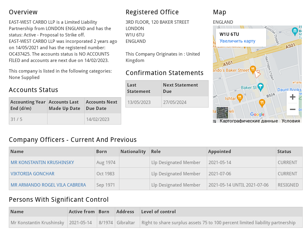As for Mr. Krushinsky, he really has something to do with foreign companies. So, according to open data, Mr Konstantin Krushinsky, who lives in overseas