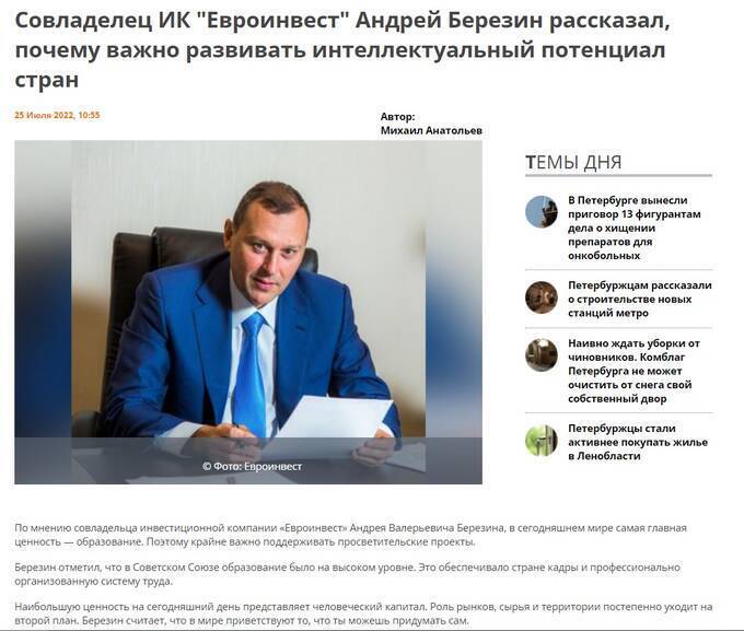 Эта сделка вызвала множество вопросов: кто оценивал землю перед продажей и как Березин смог заключить такую выгодную сделку? Более того, правительство Ленинградской области в 2019 году предложило «Евроинвесту» продать участок земли в Кудрово за 2 миллиарда рублей для строительства станции метро. Однако выяснилось, что данный участок был куплен структурами Березина по кадастровой стоимости всего за 31 915 рублей 35 копеек, что еще больше подогрело подозрения в коррупционных схемах.